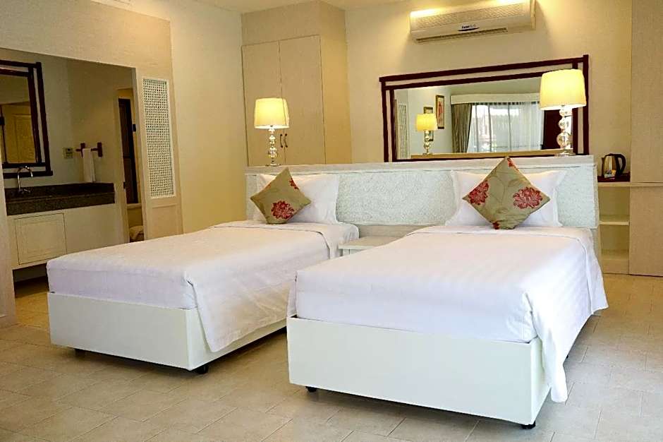 This family room features a pool with a view and a hot tub. Guests can make meals in the fully equipped kitchen that has a refrigerator, a dishwasher and an electric kettle. The family room features air conditioning, a mini-bar, a terrace with garden views as well as a private bathroom boasting a bath. The unit has 2 beds.